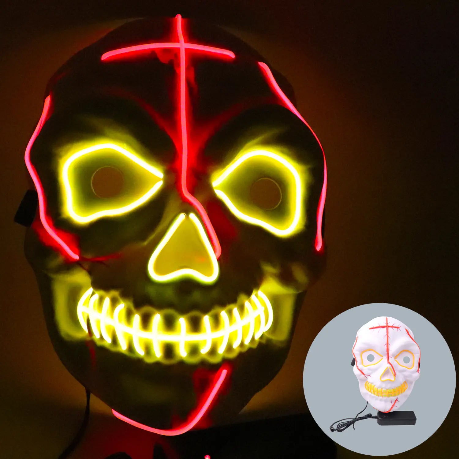 Crafted from high-quality plastic, the mask features an eye-catching design with a realistic bloody skull motif that adds a chilling touch to your look. The vibrant red and yellow lights will illuminate your presence, ensuring you are the life of the party or the most feared figure in the crowd.